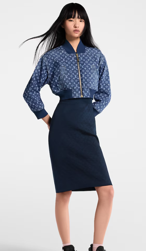 This pilot jacket features a lightweight Monogram denim cut with a short silhouette, showcasing a sporty style amidst the trend. Ribbed collar, cuffs, and hem create a snug fit, while eye-catching zippers and side pockets enhance the overall design.